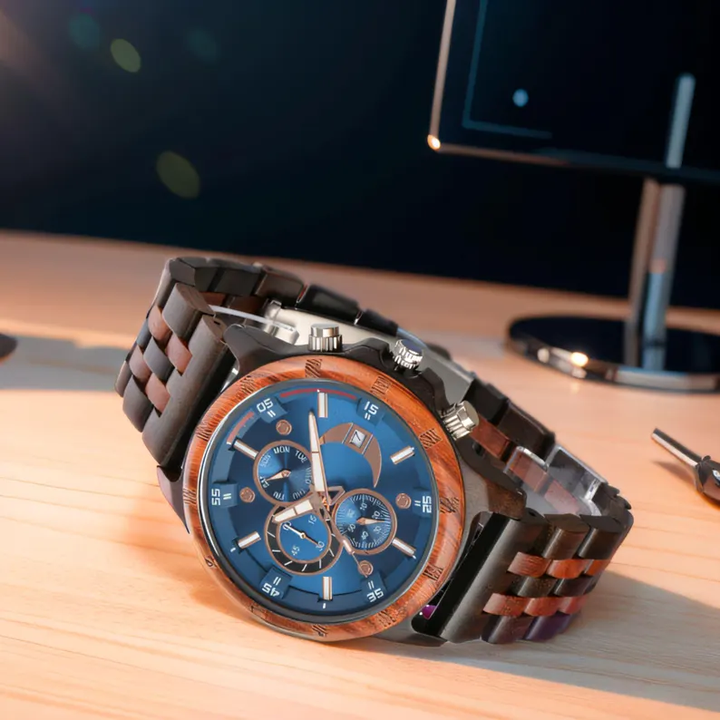 This handmade, personalized wooden wristwatch is a timeless blend of natural beauty and modern elegance. Perfect for gifting or adding a touch of sophistication to your wardrobe.