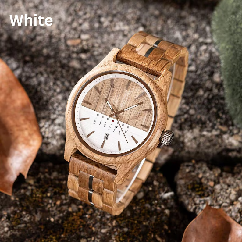 White Dial Men’s Wooden Watch