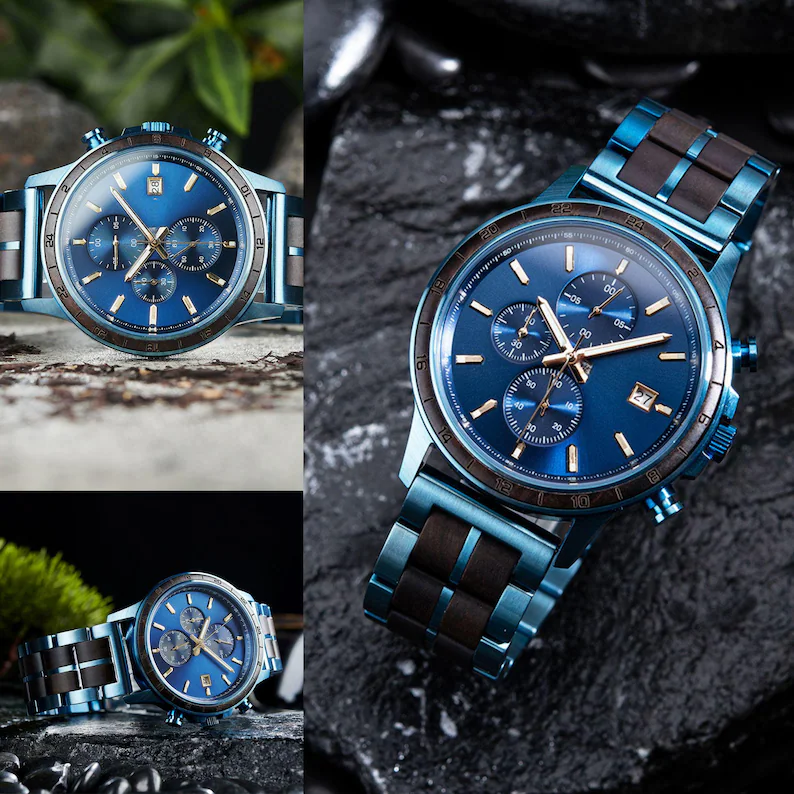 Dark Blue Men’s Wooden Watch