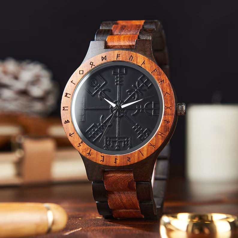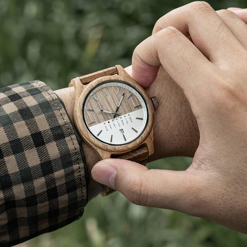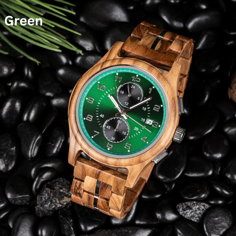 Men’s Wooden Watch With Green Dial